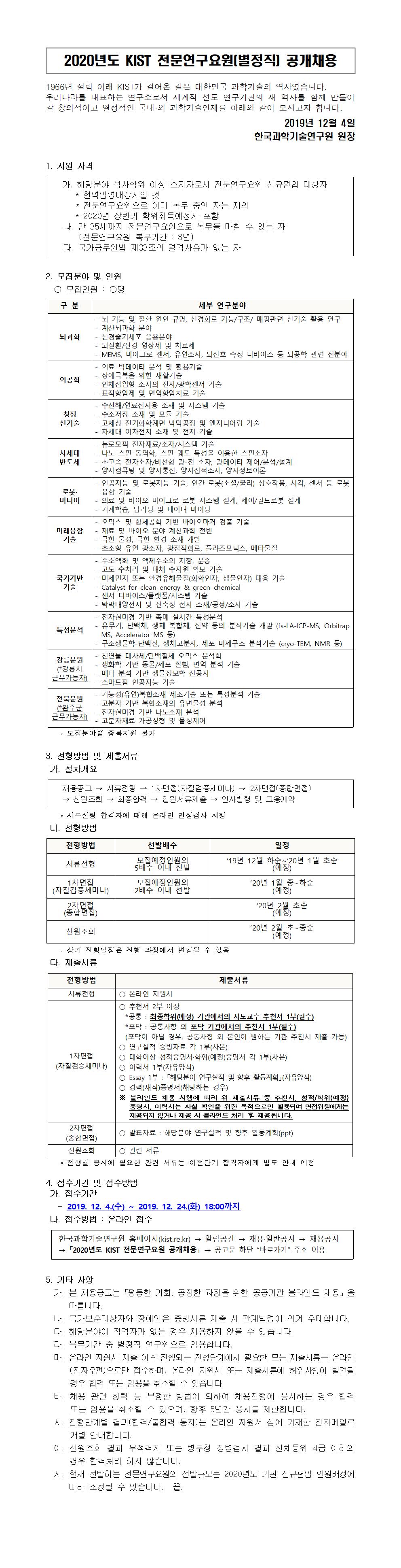 채용담당자 문의 : recruit@kist.re.kr