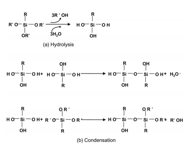 실란 커플링제의 가수분해 및 축합 반응 메커니즘 ( Hydrolysis and self-condensation reaction mechanism of silane coupling agent)