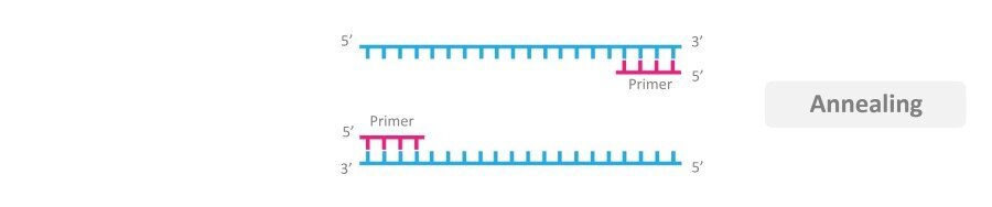 다음으로 각각의 가닥에 primer를 붙입니다. 이걸 annealing이라고 합니다.