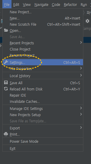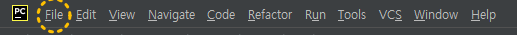파이참 메인 메뉴에서 File을 선택해줍니다.