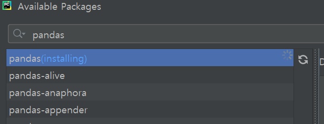 설치할 인터프리터인 Pandas 를 검색하면 맨 위에 나오는 것을 확인할 수 있습니다.